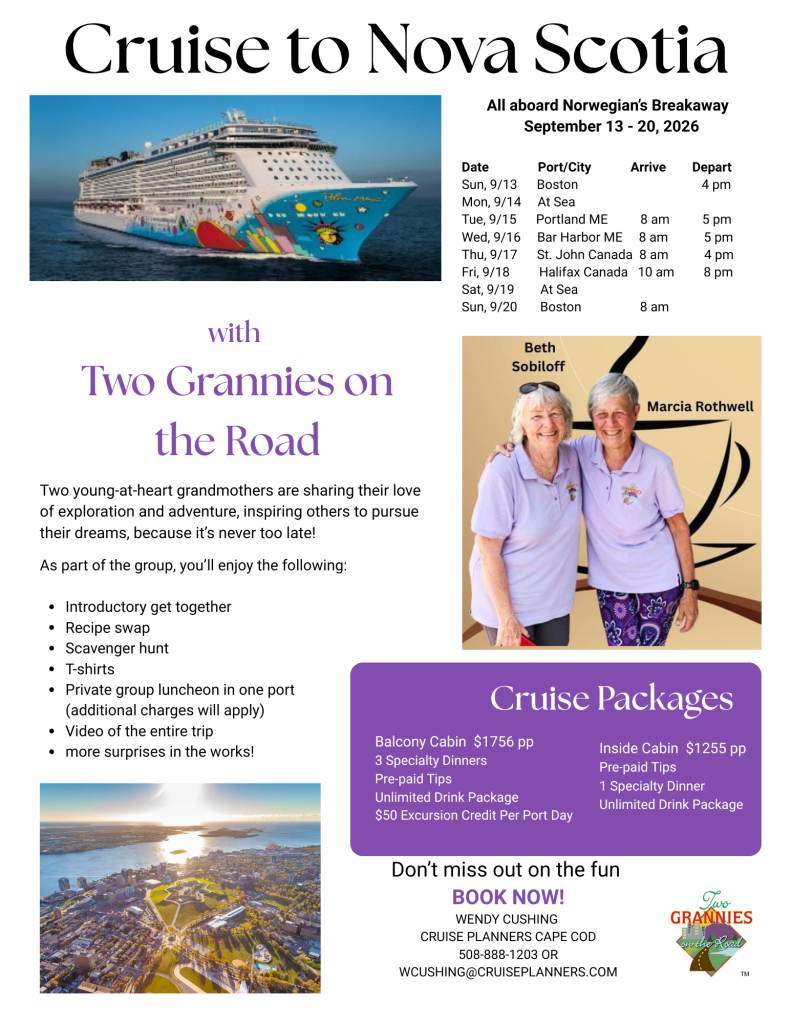 Cruise to Nova Scotia Scan the QR Code to begin your booking process. or Contact Wendy Cushing to Book Now!